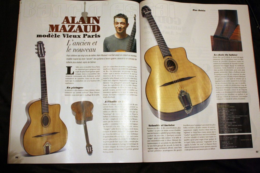 Copies des bancs d’essais parus dans la revue Guitarist Acoustic, rédigés par Max Robin.