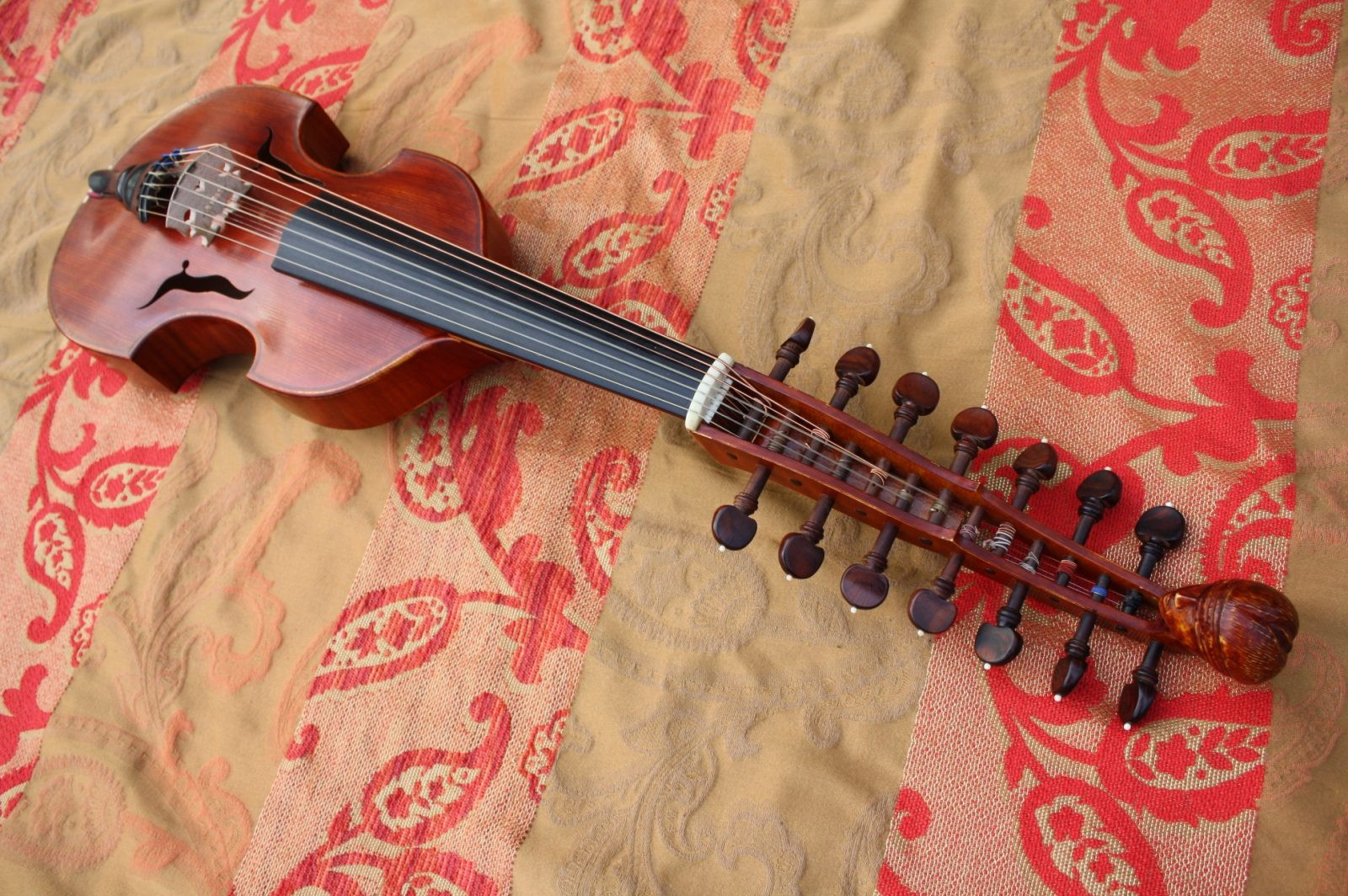 La viole d’amour est un instrument au timbre subtil et enveloppant, reconnaissable à la présence de cordes sympathiques qui enrichissent la résonance et la profondeur du son.