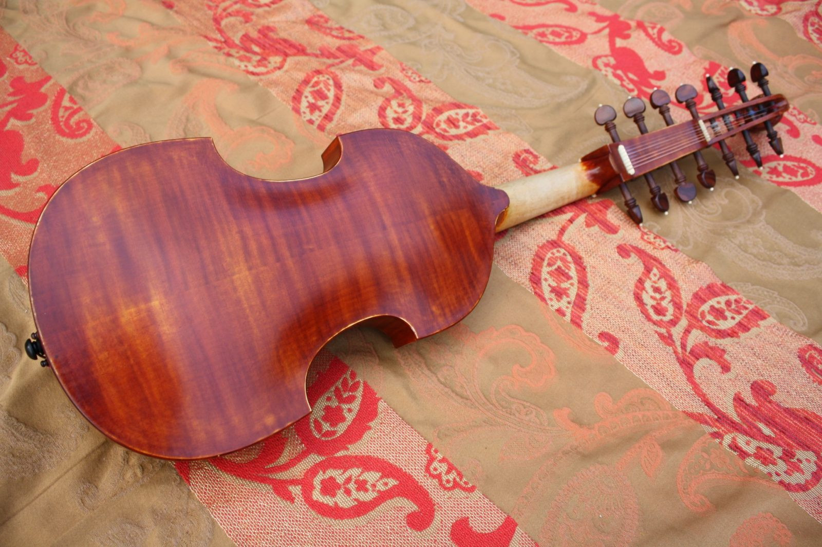 Réalisée dans l’atelier d’Alain Mazaud, cette viole d’amour s’inscrit dans la tradition des instruments anciens tout en répondant aux exigences de jeu et de justesse des musiciens d’aujourd’hui.